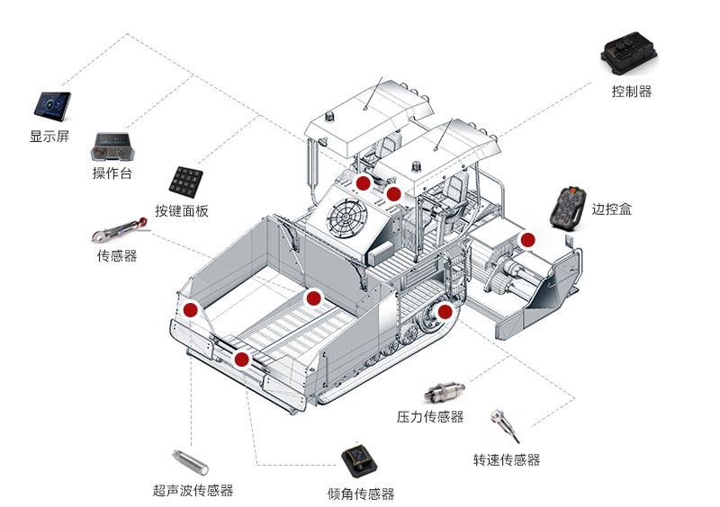 z6com·尊龙(中国)时凯集团智能摊铺机解决方案整合了感知技术、自动控制系统和数据分析算法,实现了摊铺机高度智能化操作。通过实时获取路面信息和实时调整施工参数,使摊铺机操作更加精准、高效和可靠。